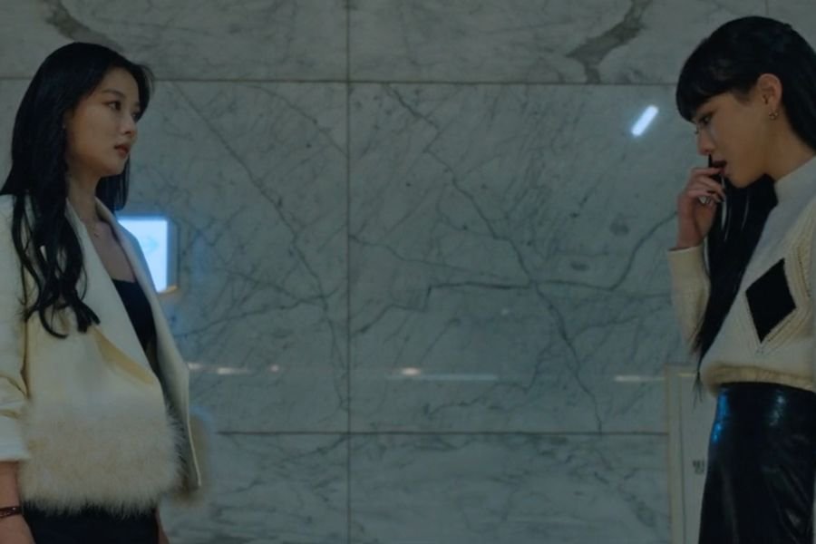 Re Na ends up catching Ah Jin trying to open their boss’s safe, and reveals she got the files first before beating Ah Jin over the head with them while Jun Seo watches.